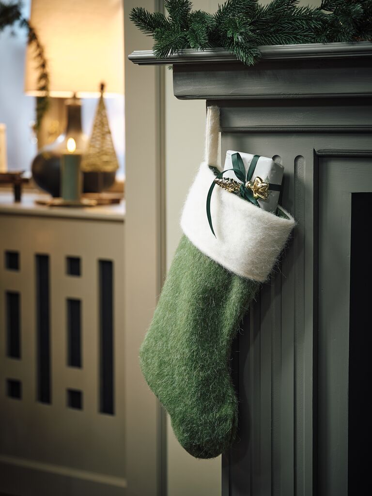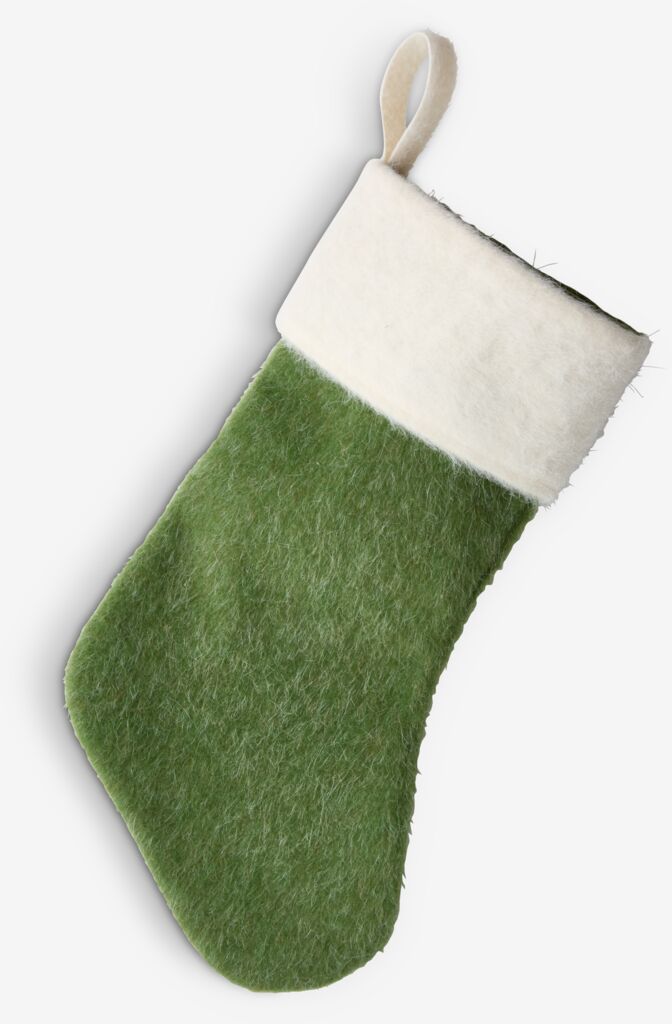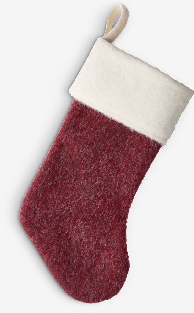 Șosetă de Crăciun cu un design clasic, cu o textură pufoasă și o gaică pentru agățat. Dimensiunea sa generoasă o face ideală pentru a fi umplută cu cadouri și bunătăți. Disponibilă în culorile tradiționale, roșu sau verde. 21x43x2 cm