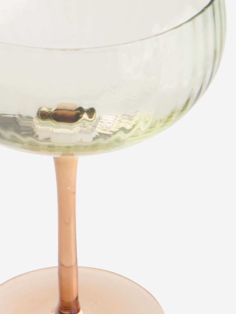 Set de 2 pahare cocktail fabricate din sticlă (50% reciclată). Paharele au un design clasic cu un bol larg și detalii elegante în relief. Capacitate 350 ml. Ø10x16 cm