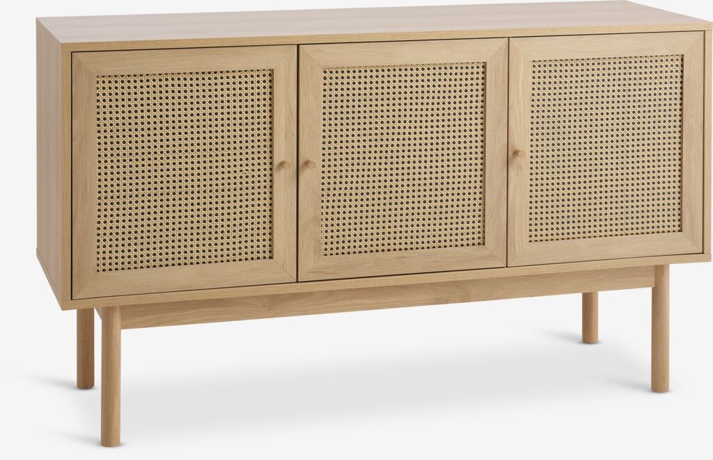 Partea de sus: PAL, Partea de jos: PAL, Laterale: PAL, Picioare: Lemn masiv de arbore de cauciuc, Spate: MDF, Ramă: MDF, Suprafaţă: Folie, Raft: PAL