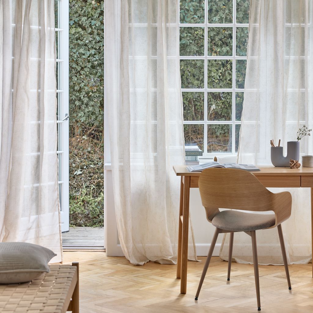 Perdeaua poate fi scurtată cu ușurință cu un fier de călcat, o cârpă și banda pentru tiv inclusă