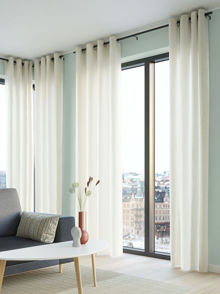 Perdeaua poate fi scurtată cu ușurință cu un fier de călcat, o cârpă și banda pentru tiv inclusă