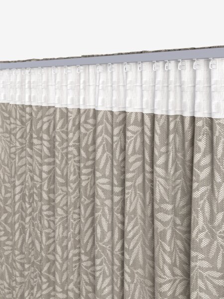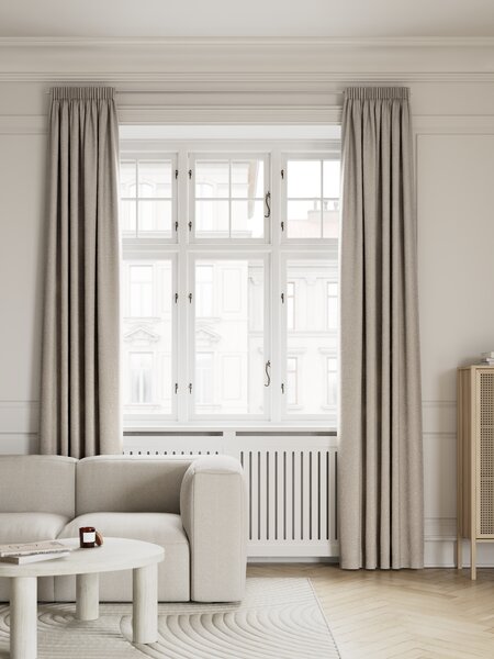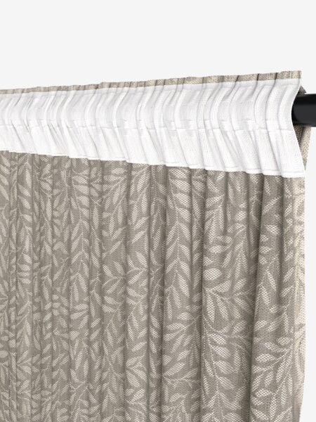 100% poliester (45% reciclat). Buzunar pentru tija de perdea și bandă pentru perdea. 1x140x245 cm