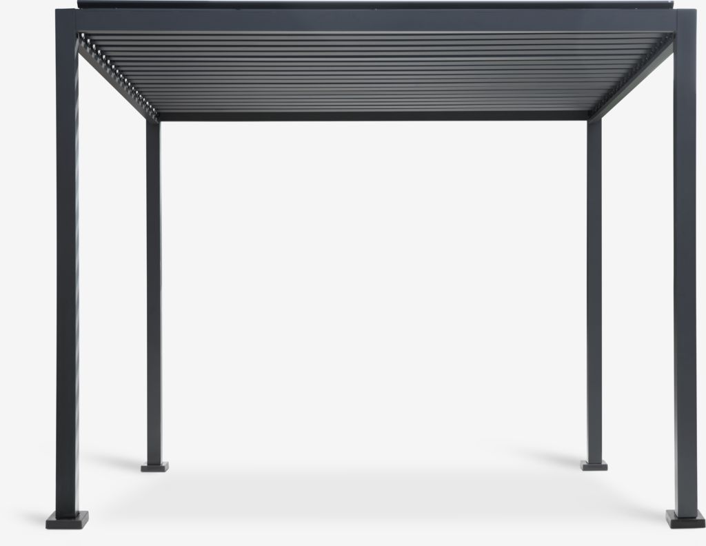 Transformă-ți spațiul exterior cu pergola HJORTEMOSE. Cu un acoperiș reglabil, impermeabil și un cadru durabil din oțel, această pergolă de grădină creează un cadru confortabil pentru orice ocazie. 3x3x2,3 m