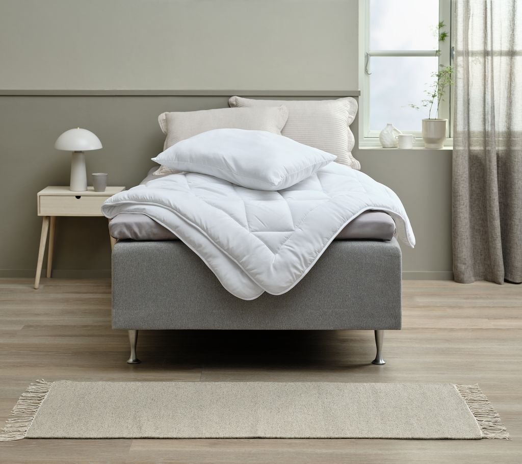 Pernă cu fibre 50x70 cm cu umplutură ușoară din fibră goală de poliester (100% reciclată), 450 g. Țesătură moale din microfibră 100% poliester. Temperatură spălare: 60°C.