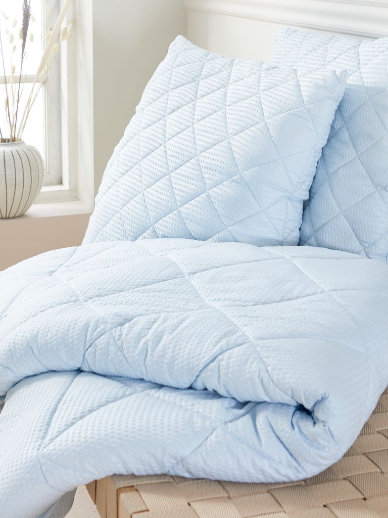 Poate fi spălat şi uscat într-o maşină cu o sarcină minimă de 7 kg. Trebuie scuturat şi aerisit regulat, nu trebuie bătut sau aspirat
