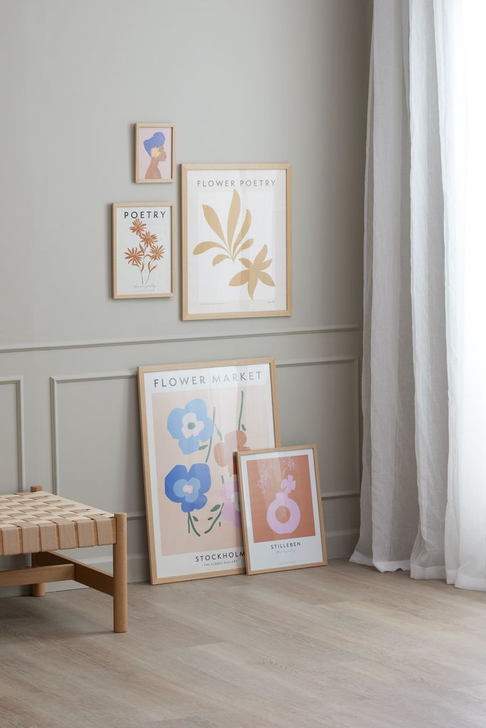 Ramă foto 60x90 cm din furnir de lemn cu protecție frontală din plastic.