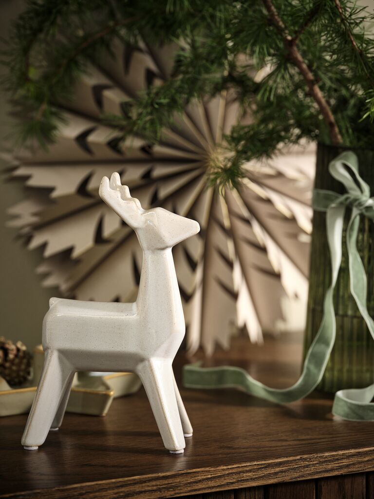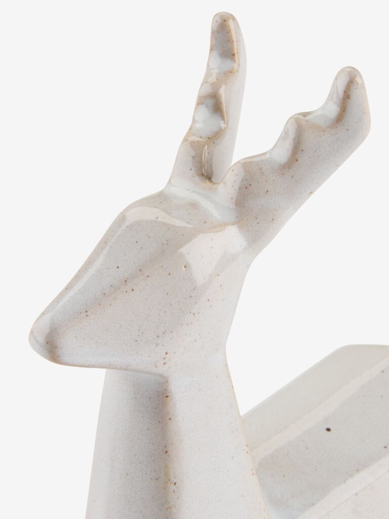Ren decorativ alb, din ceramică. Designul simplu și elegant adaugă o notă festivă pe un pervaz sau ca parte a unui aranjament de Crăciun. 7x12x19 cm