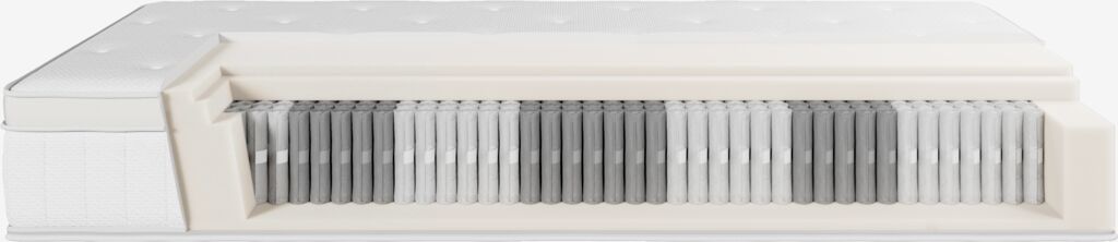 Saltea cu arcuri 180x200 cm cu grosime de 28 cm, cu 500 de arcuri multipocket/m², împărțită în 7 zone de confort, oferind un suport ergonomic corect. Salteaua este căptușită cu spumă foarte elastică și spumă poliuretanică. Husă cu polietilenă răcoroasă pe o parte, care are efect imediat și calmant de răcorire. Husă cu matlasare groasă cu spumă cu memorie care înlătură tensiunea musculară.