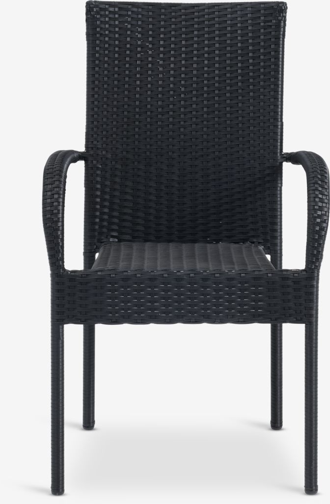 Set de terasă cu 2 locuri. Masă: Oțel și sticlă securizată. Ø60x70 cm Scaun: Oțel și poliratan. Stivuibil.