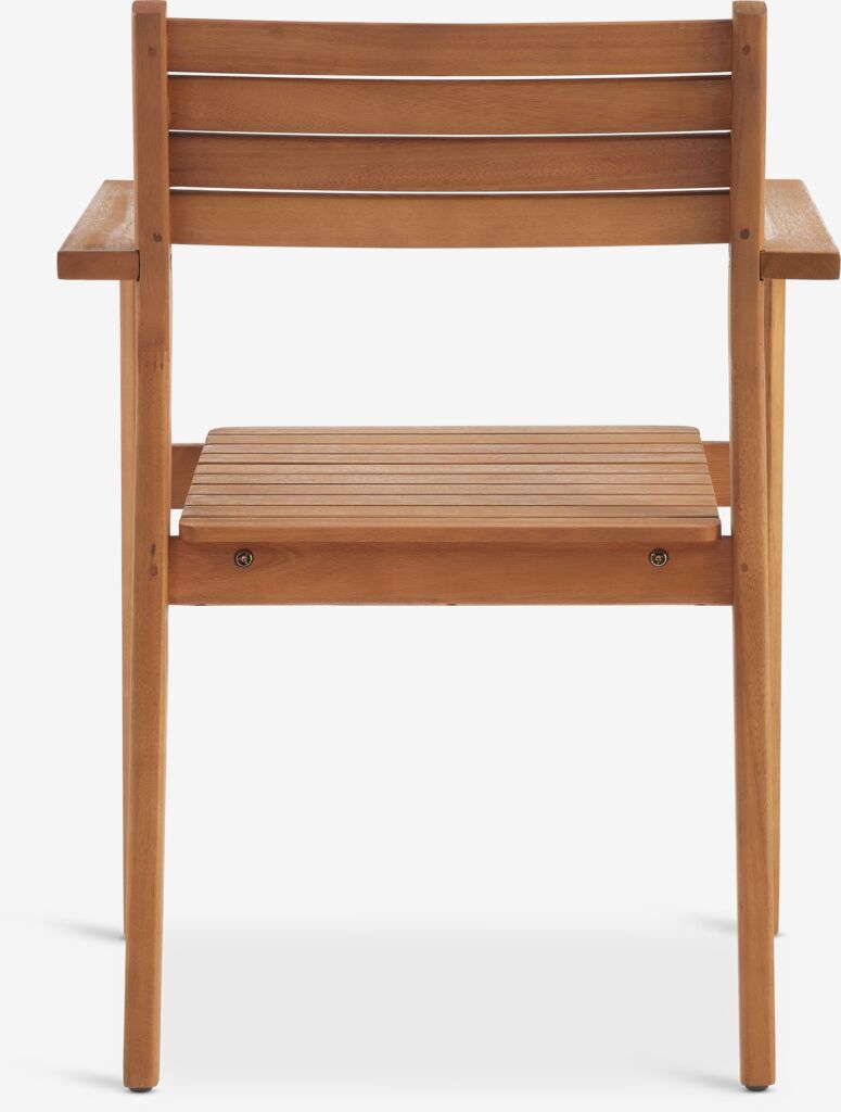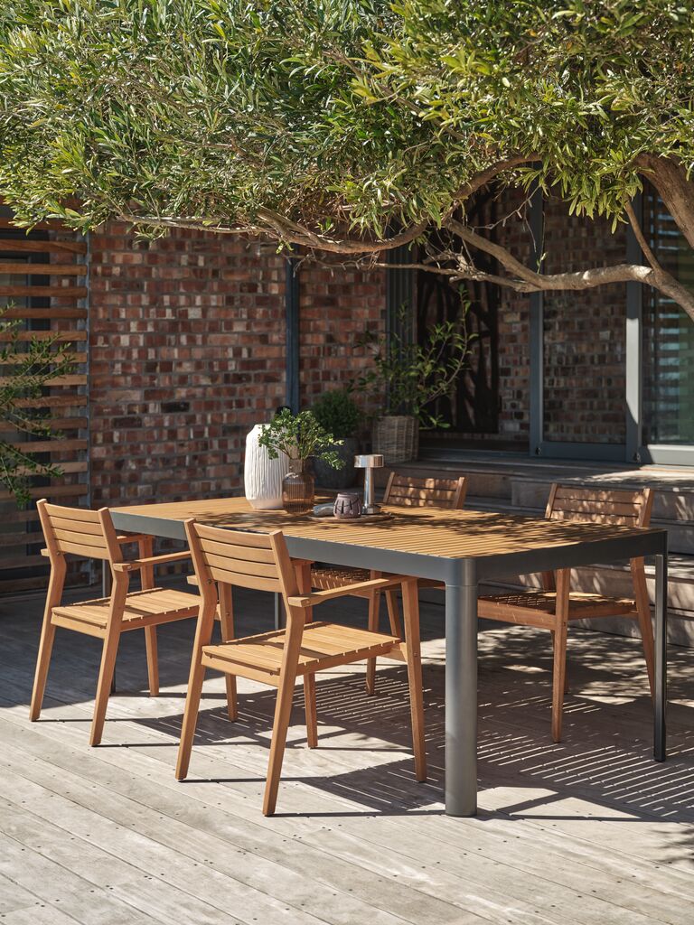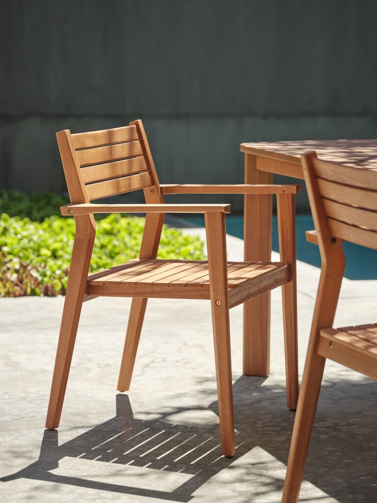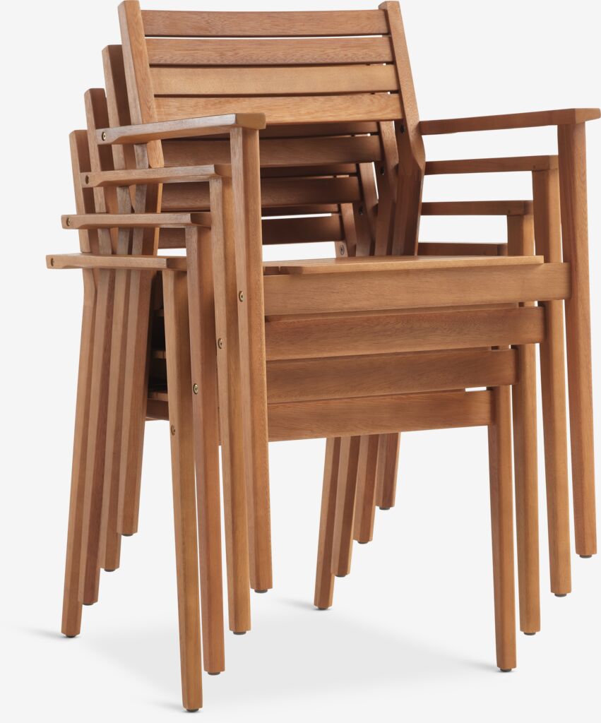 Scaun stivuibil gri cu șezut și spătar din plasă de oțel și cadru din oțel. Cotierele și marginea superioară a spătarului sunt finisate cu lemn de esență tare FSC®, tratat cu ulei pentru un aspect elegant. Oțelul este tratat cu un strat Durasint® anti rugină. Lemnul durabil este tratat cu ulei pentru a-l proteja și a-i evidenția culoarea naturală. Se recomandă tratarea regulată a lemnului pentru a-și menține culoarea și a-l proteja de umiditate.