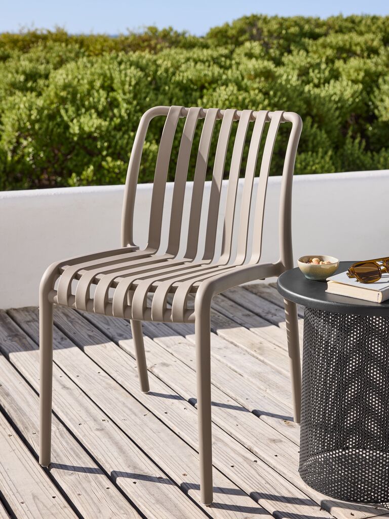 Scaun stivuibil din plastic, cu protecție UV pentru a preveni estomparea culorii. Scaunul de grădină poate fi stivuit pentru depozitare compactă.