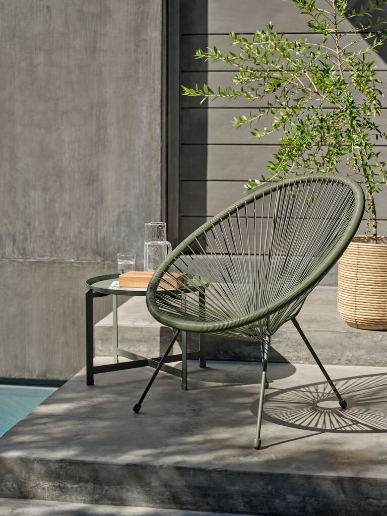 Scaun de terasă din aluminiu și poliratan. Incl. pernă cu husă rezistentă, țesută. 70x85x80 cm