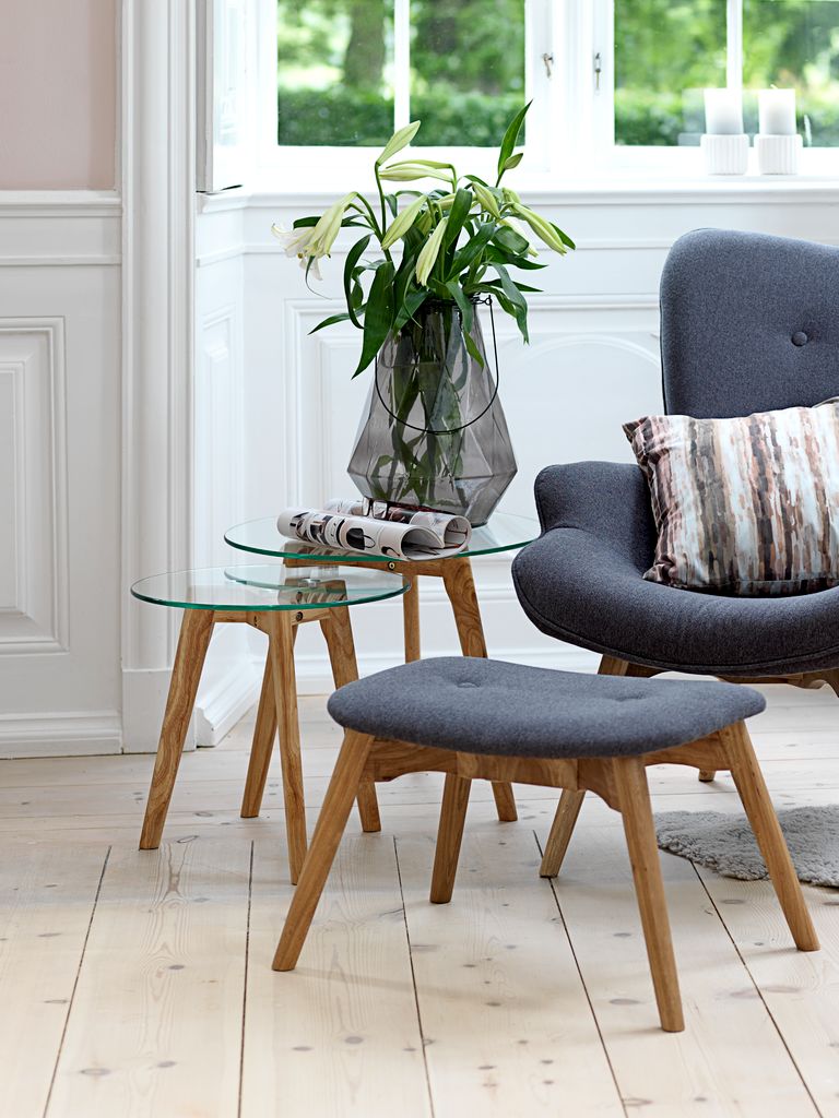 Furnir de stejar și sticlă securizată. Ø50/40x45/40 cm