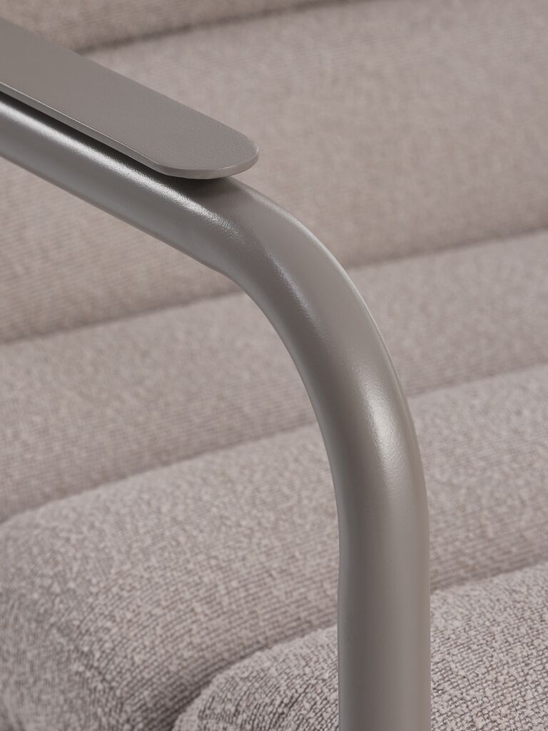 Set de terasă cu 4 locuri. Masă: Oțel, lemn de esență tare FSC®, tratat cu ulei și poliratan. 56x93x43 cm. Colțar 3 locuri: Oțel și poliratan. Poate fi inversat. Fotoliu: Oțel și poliratan. Incl. perne luxoase cu husă rezistentă, țesută.