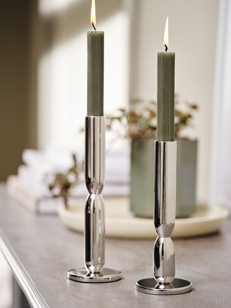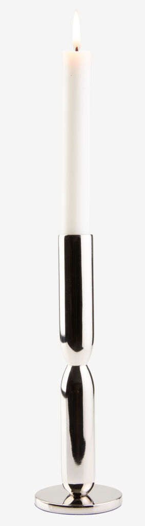 Sfeșnic cu un finisaj cromat reflectorizant și un design modern, sculptural. Forma elegantă oferă un accent simplu și rafinat, care intensifică în mod frumos strălucirea lumânării. Ø7 x 22 cm