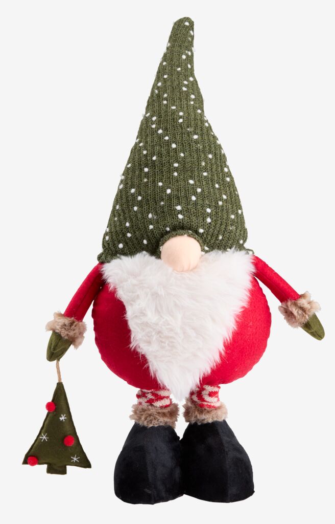 Spiriduș Crăciun într-un design clasic roșu și verde. Are picioare reglabile, astfel încât să îi puteți regla înălțimea, în funcție de dacă doriți să stea pe podea sau pe un raft. l22 x L12 x H61 cm