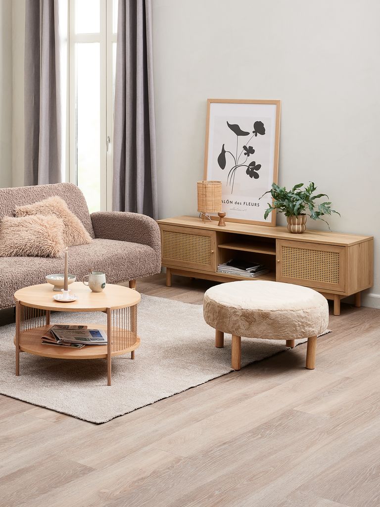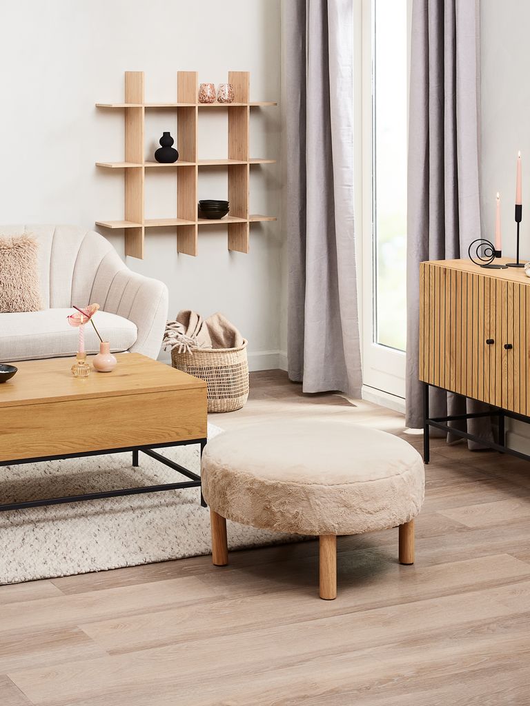 Taburet RAMSDAL Ø70 bej/stejar plușat