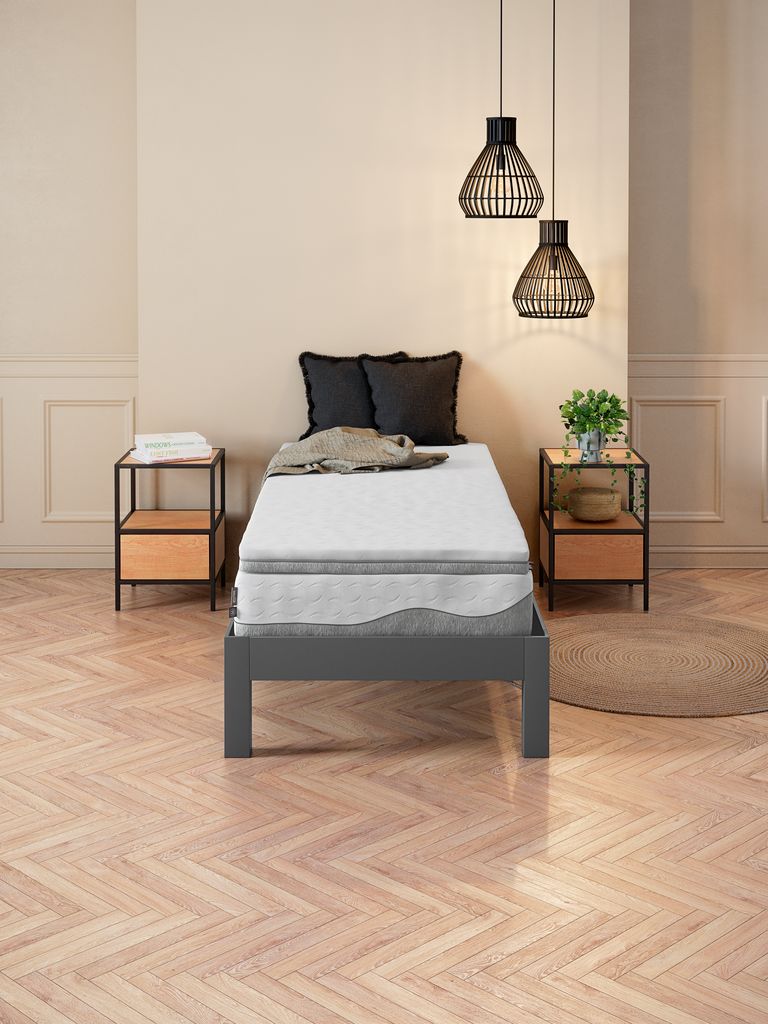 Saltea luxoasă 90x200 cm de 8 cm grosime, cu nucleu din spumă poliuretanică și spumă cu memorie AIR care înlătură tensiunea musculară. Spuma cu memorie AIR se mulează rapid și perfect pe conturul corpului, chiar și într-un mediu răcoros de somn. Salteaua are gel răcoritor în zona superioară. Husă lavabilă cu polietilenă pe o parte, care are un efect de răcoritor imediat.