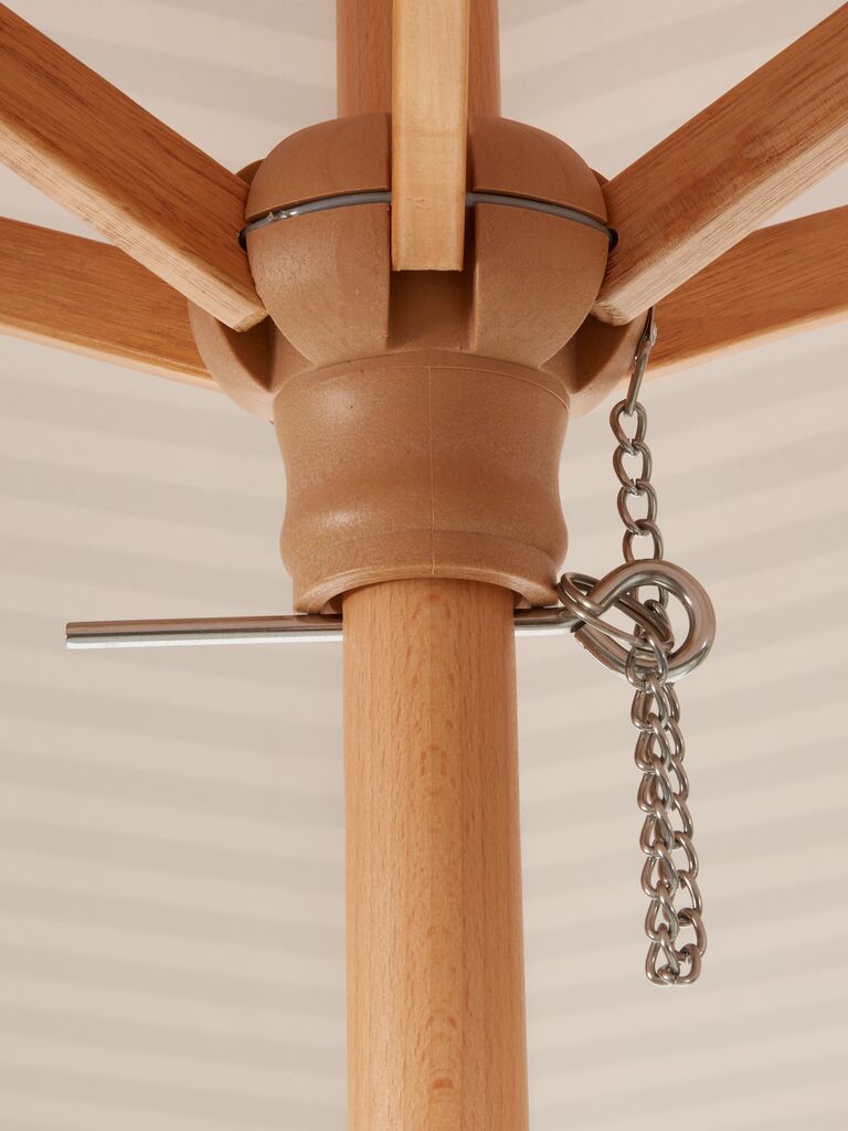 Relaxează-te la umbră cu umbrela de soare SMYGEHUK. Dispunând de calotă impermeabilă cu protecție UV, spații de ventilare și picior din lemn de esență tare lăcuit, această umbrelă de soare în dungi este potrivită pentru aproape orice spațiu exterior. Ø200x234 cm