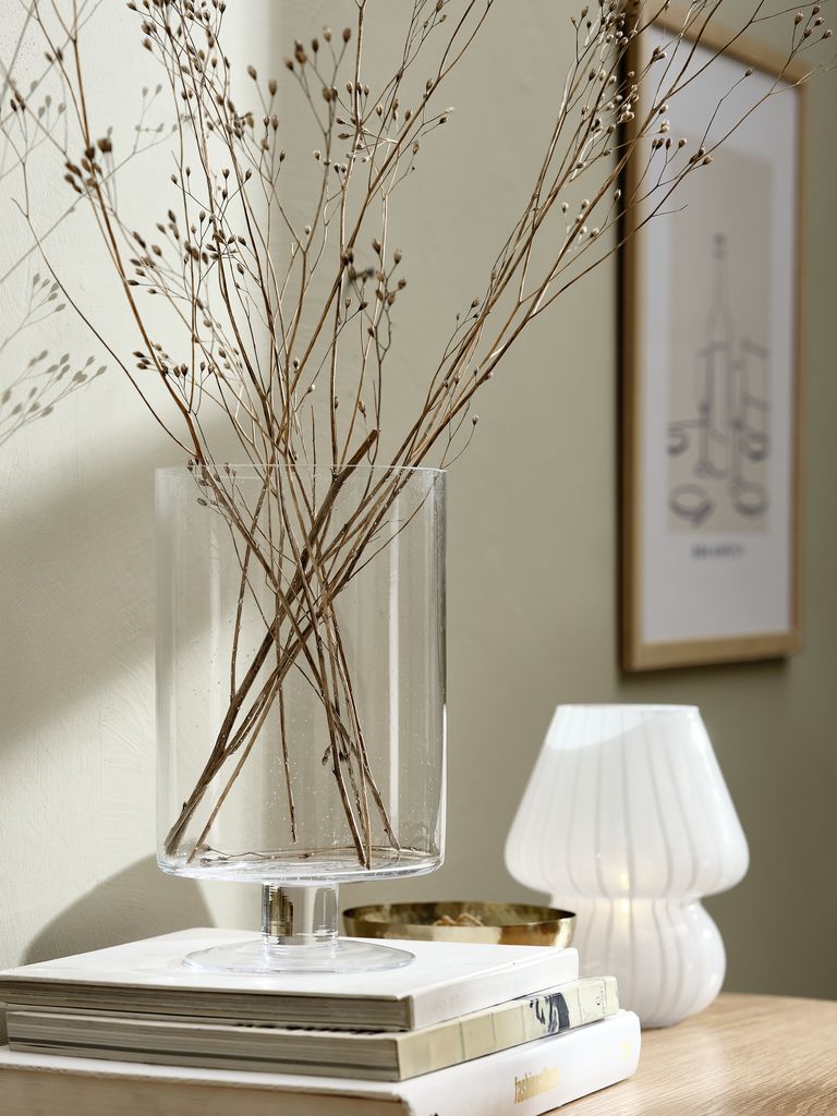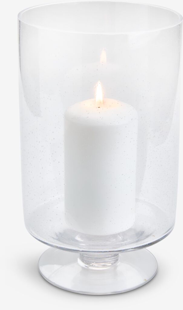 Vas de sticlă simplu și elegant. Sticla transparentă permite luminii lumânării să strălucească frumos, creând o atmosferă caldă și primitoare. Designul simplu, dar stilat, completează orice stil de decor. Poate fi folosit și ca vază. Ø15x25 cm