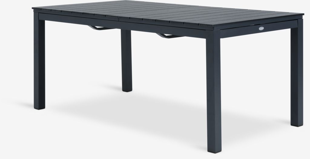 Set de grădină cu 4 locuri. Masă: Aluminiu și lemn artificial. Incl. 2 extensii, care pot fi depozitate sub blat. 95x170/229/273x76 cm Scaun: Oțel și poliratan. Stivuibil.