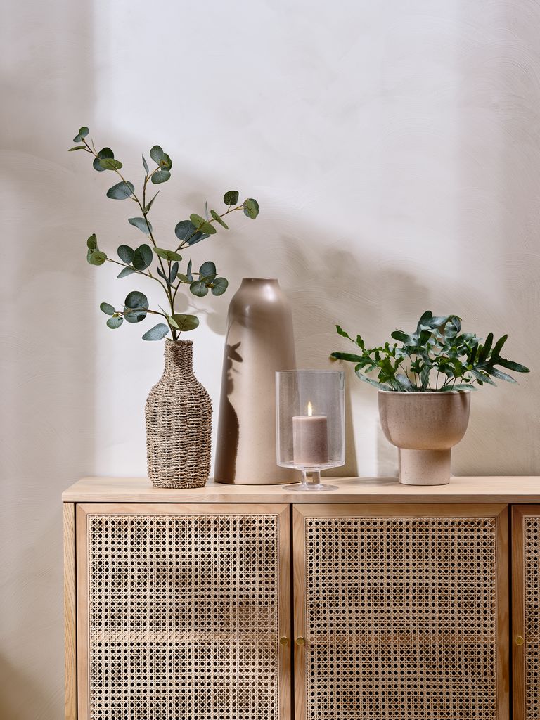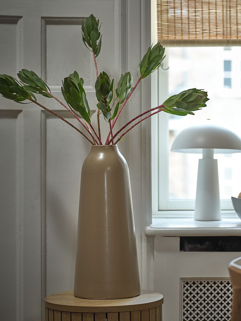 Vază nisipie din ceramică. Această vază înaltă se remarcă prin silueta sa elegantă și finisajul neted. Are o deschidere îngustă, ceea ce o face potrivită pentru tulpini de flori sau doar ca obiect decorativ de sine stătător. Ø20x45 cm