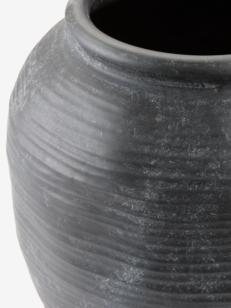 Vază neagră din ceramică cu formă largă și aspect brut. O piesă modernă de impact pentru decorul casei tale. Ø25x30 cm