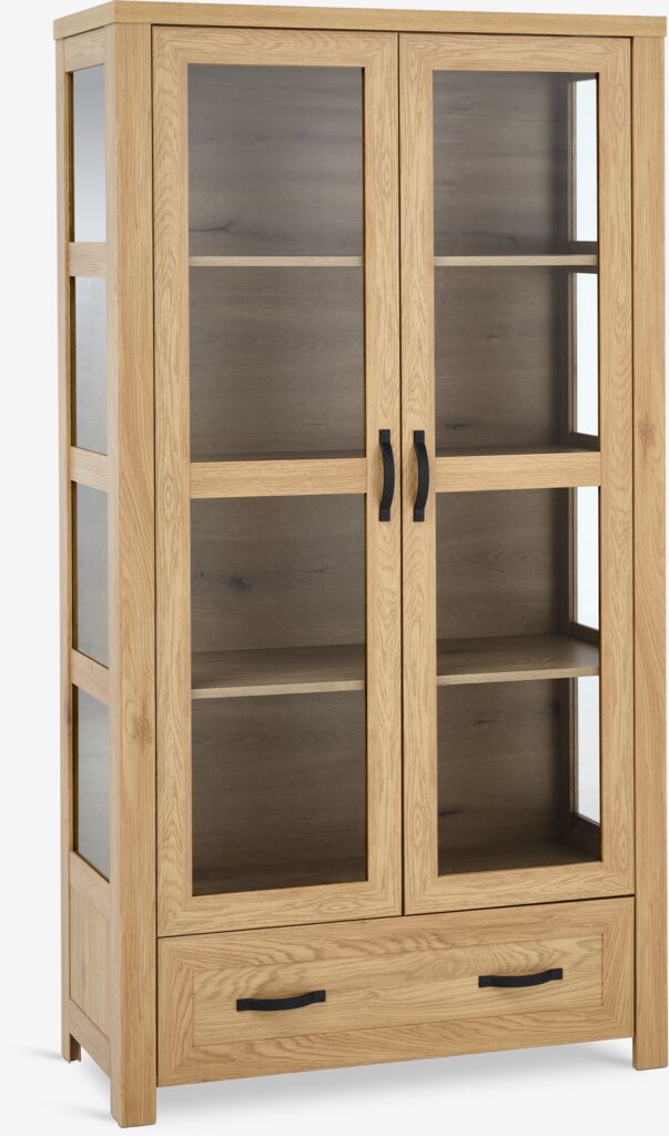 Lemn masiv de stejar, furnir de stejar și sticlă securizată. 80x126x35 cm