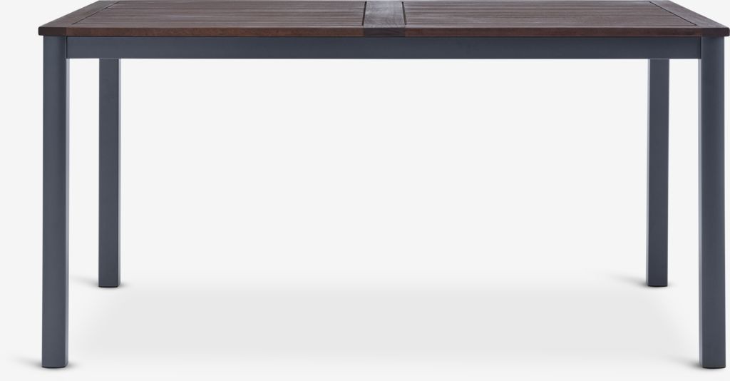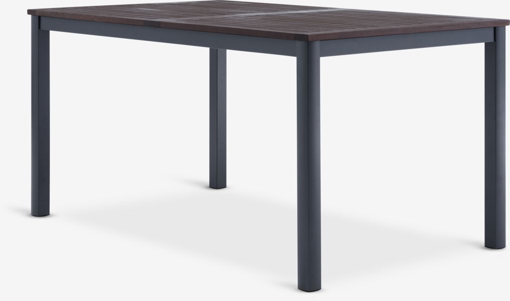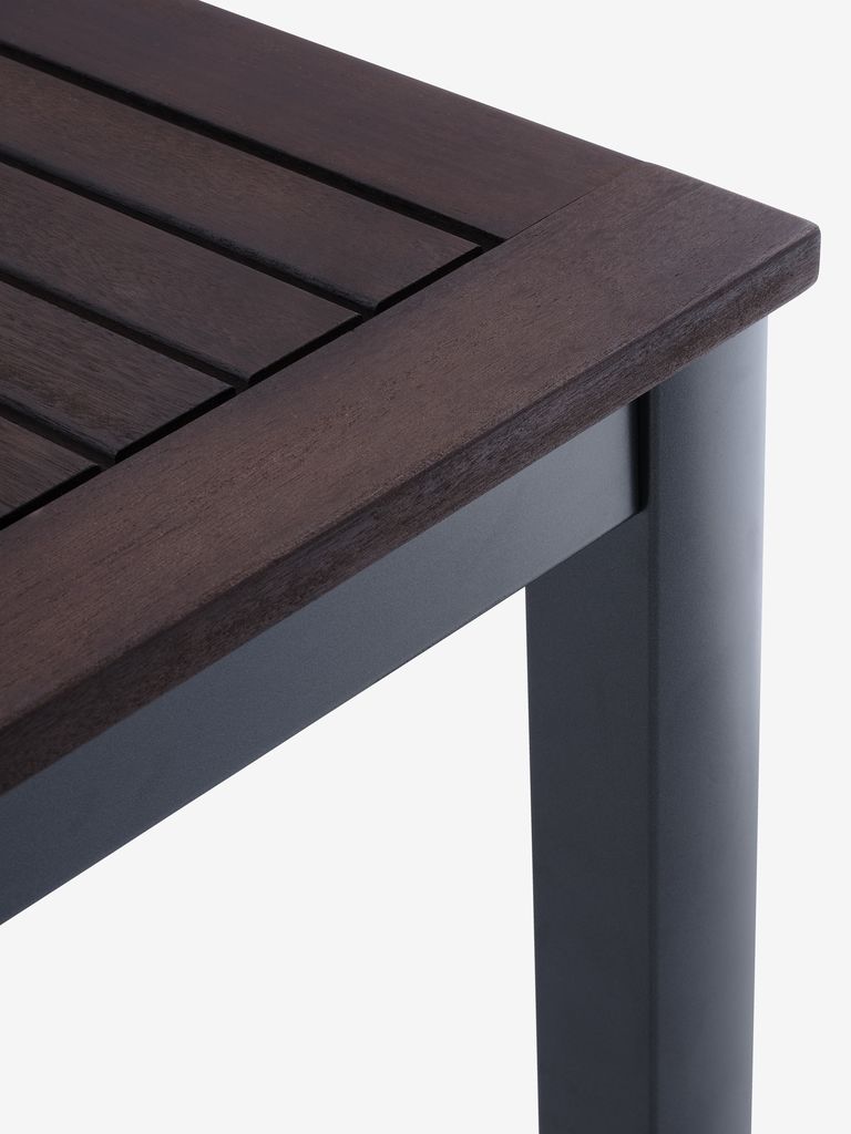 Set de grădină cu 4 locuri. Masă: Aluminiu și lemn de esență tare FSC®, tratat cu ulei. Incl. 1 extensie, care poate fi depozitată sub blat. 99x214/297x75 cm Scaun: Aluminiu, textilină și lemn de esență tare FSC®, tratat cu ulei. Stivuibil.