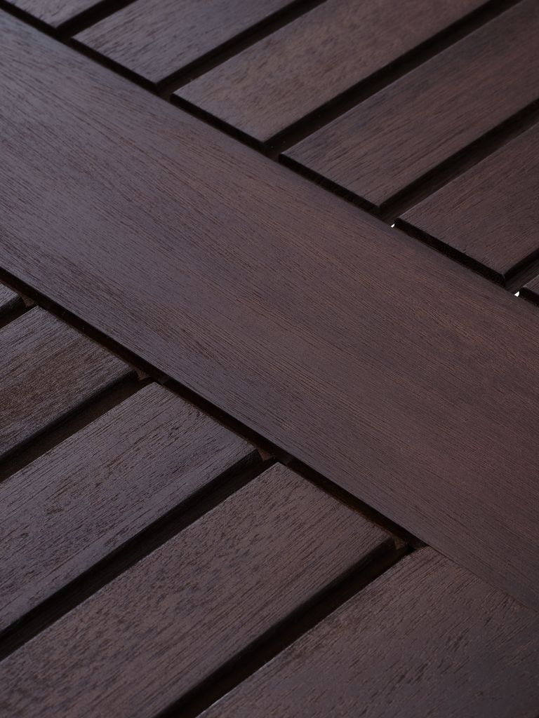 Set de grădină cu 4 locuri. Masă: Aluminiu și lemn de esență tare FSC®, tratat cu ulei. 91x149x75 cm Scaun: Aluminiu, textilină și lemn de esență tare FSC®, tratat cu ulei. 6 poziții. Pliabil.