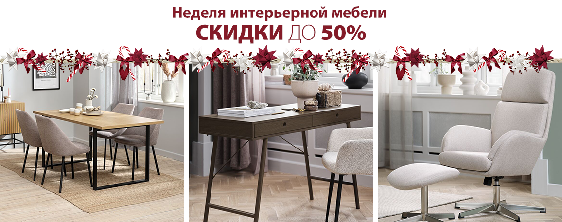 C 11.12 - 17.12.2025 мы ждем вас на Неделю Мебели со скидками до 50% на интерьерную мебель.