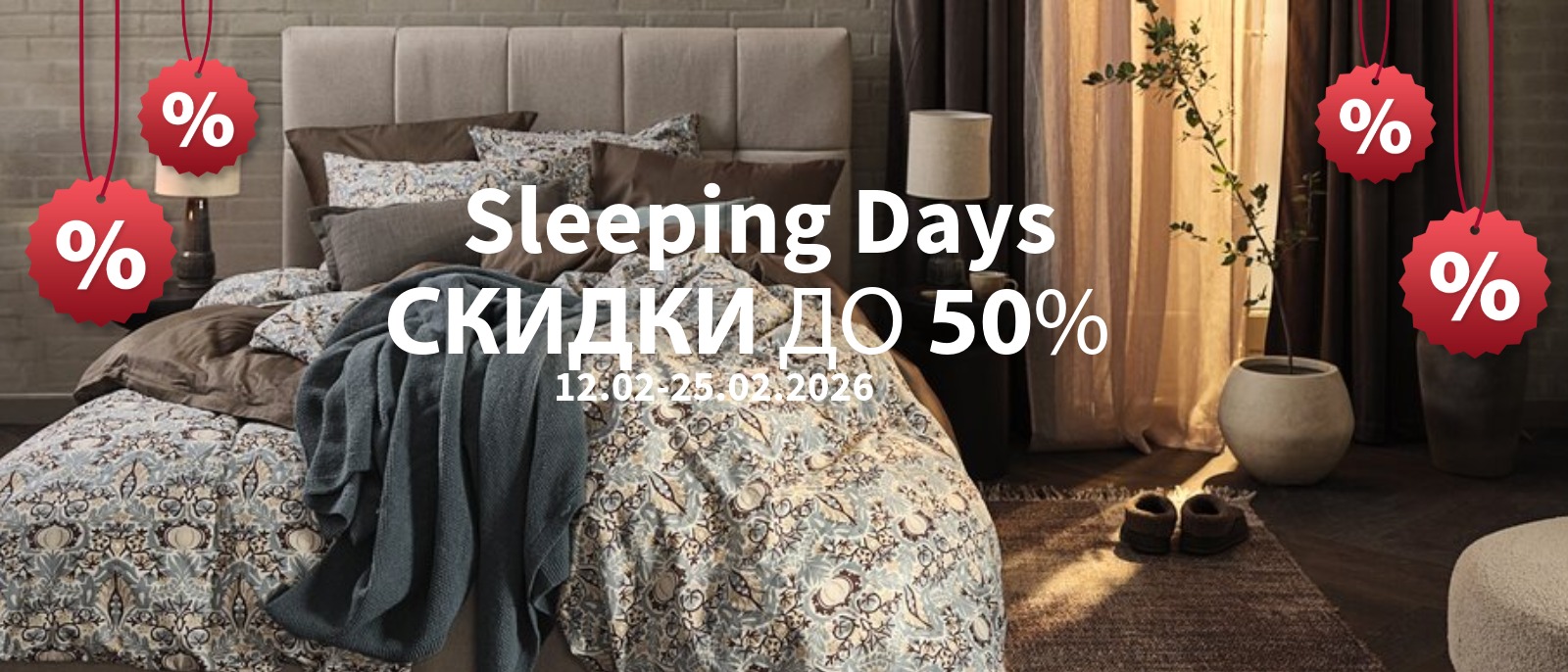 В период с 12.02.2026 по 25.02.2026 вас ждут скидки до 50% на товары для сна.