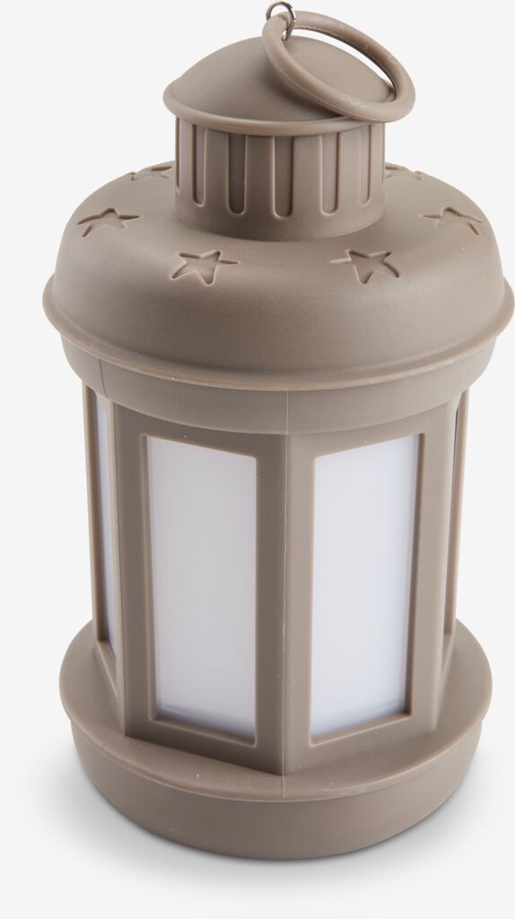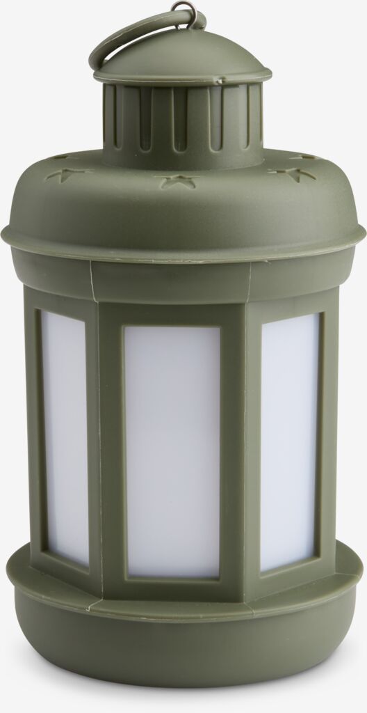 Фонарь с встроенной LED-подсветкой, создающей тёплый и приятный свет. Оснащён функцией таймера, автоматически поддерживающей освещение в течение 8 часов. Работает от 2 батареек AA (в комплект не входят). Доступен в сером, оливково-зелёном и белом цветах. Ø9×15 см