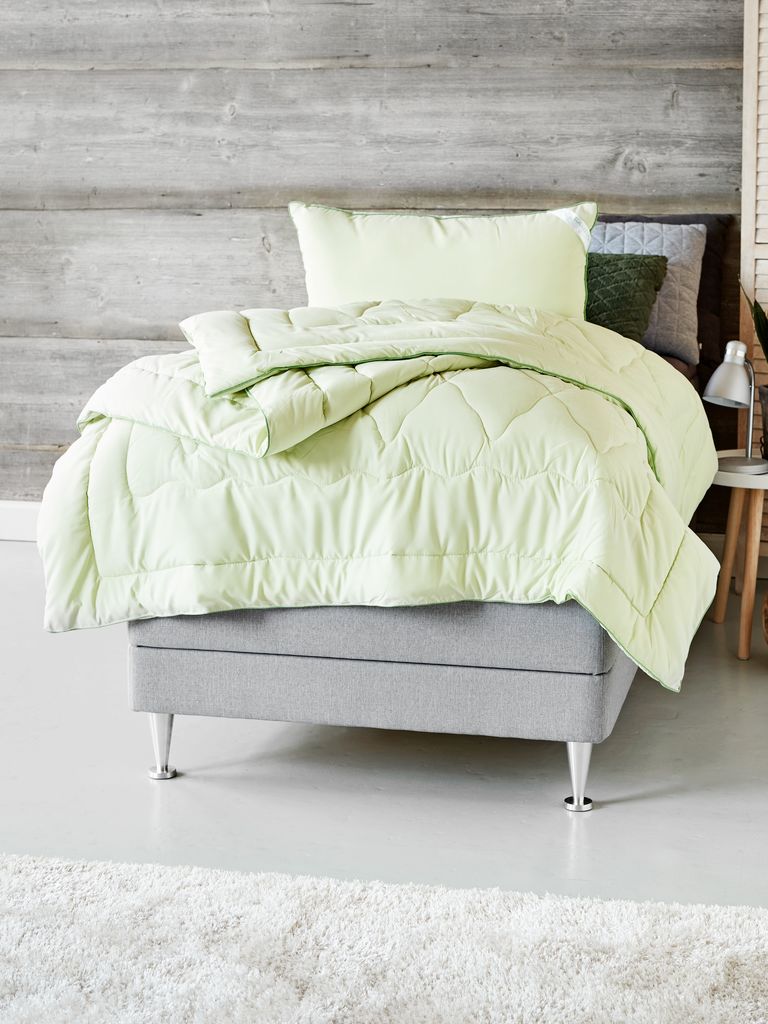 Одеяло Fiber 140x200 см. Наполнитель: 50% вискоза из бамбука/50% силиконизированное полиэфирное полое волокно, 700 г. Ткань из 100% полиэстеровой микрофибры. Температура стирки: 40°.
