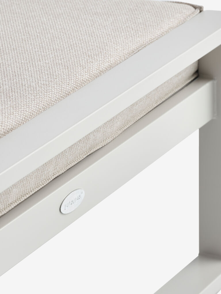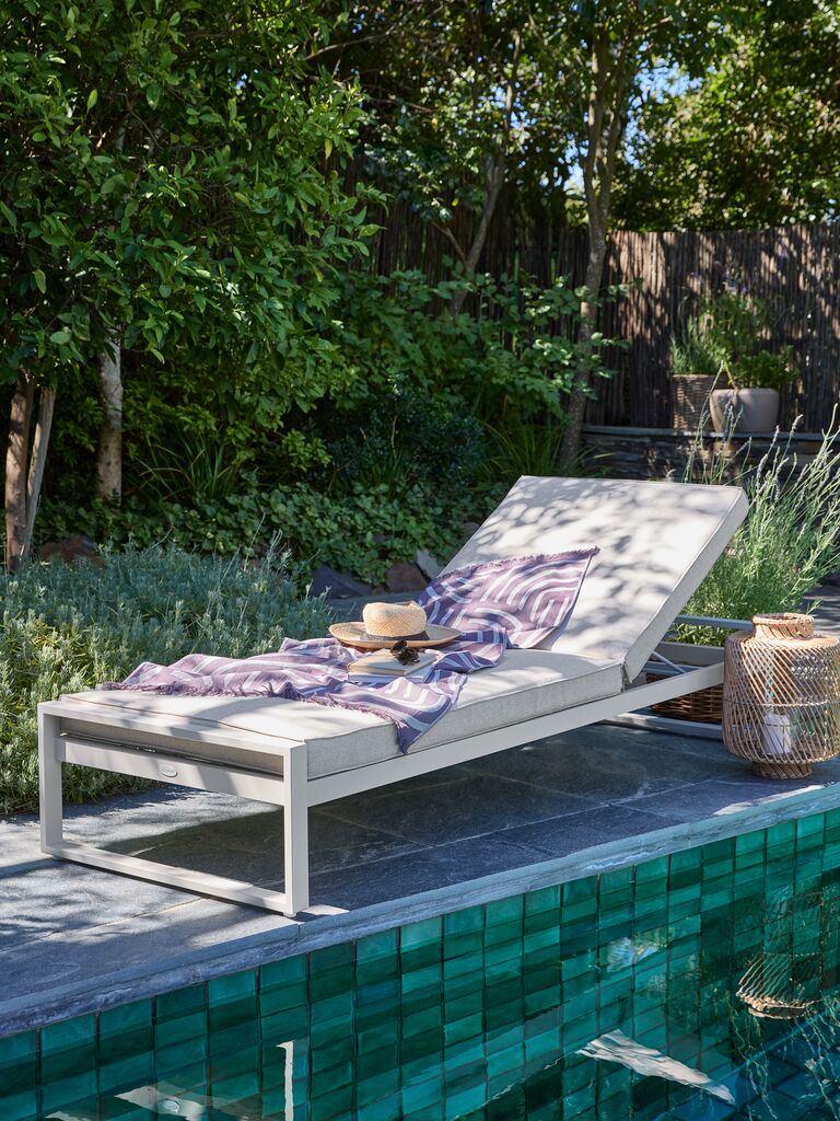 Алюминиевый шезлонг. В комплекте подушка с быстросохнущим тканым чехлом. Чехол имеет водонепроницаемый слой с внутренней стороны, предотвращающий проникновение воды внутрь подушки. 75x210x107 см