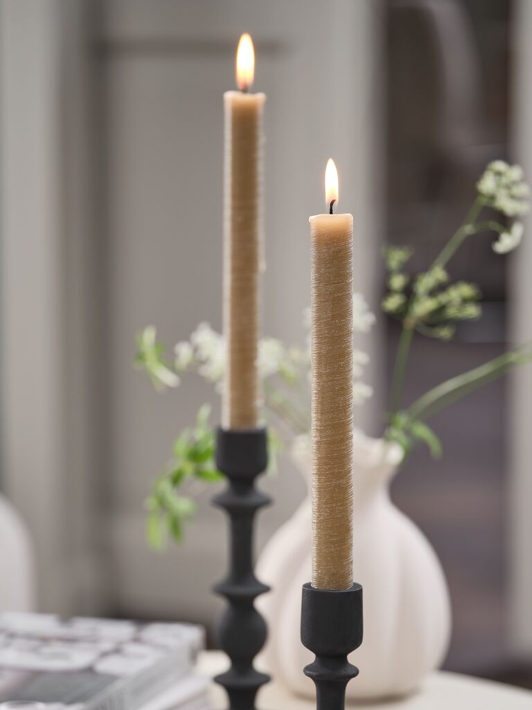 Длинные свечи с рустикальным дизайном, коричневого цвета. Идеальны для романтических ужинов или уютного вечера дома. В упаковке 2 штуки. Ø2,2x22 см
