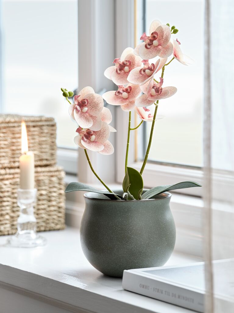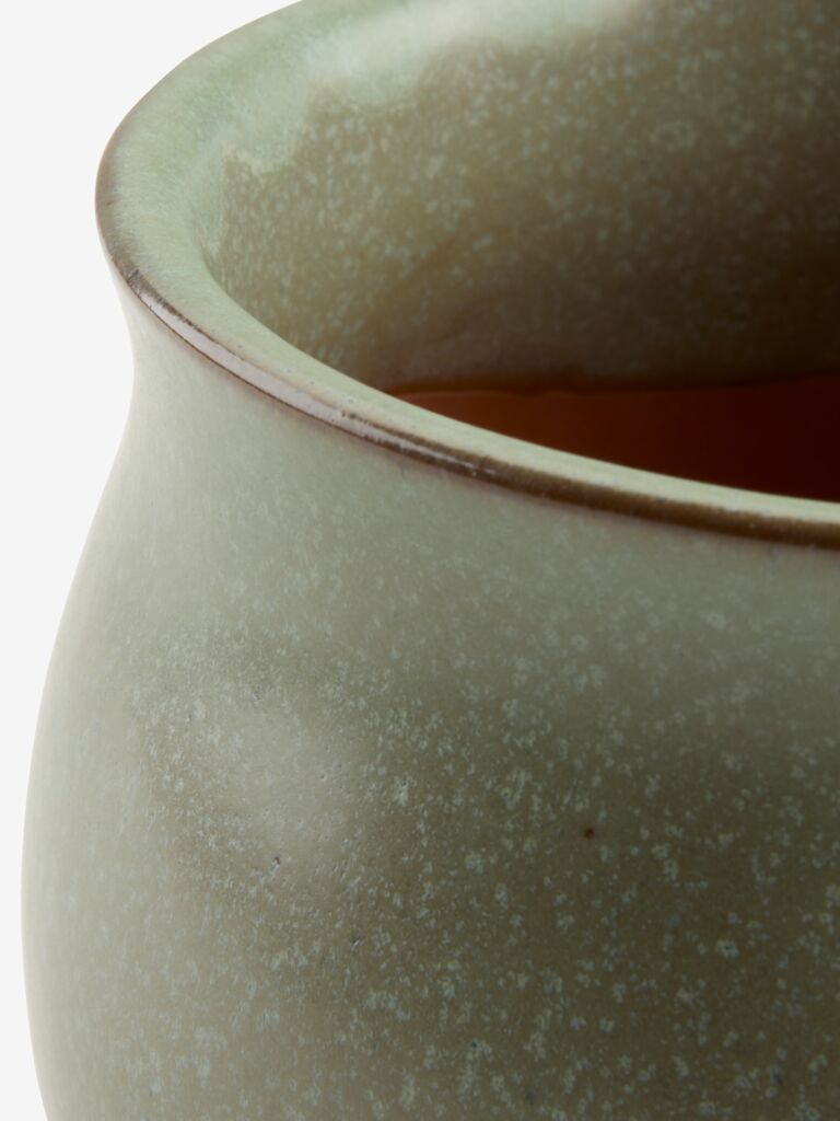 Горшок зелёного цвета из керамики и терракоты с классическим дизайном. Подходит для небольших растений. Ø12,5x11 см